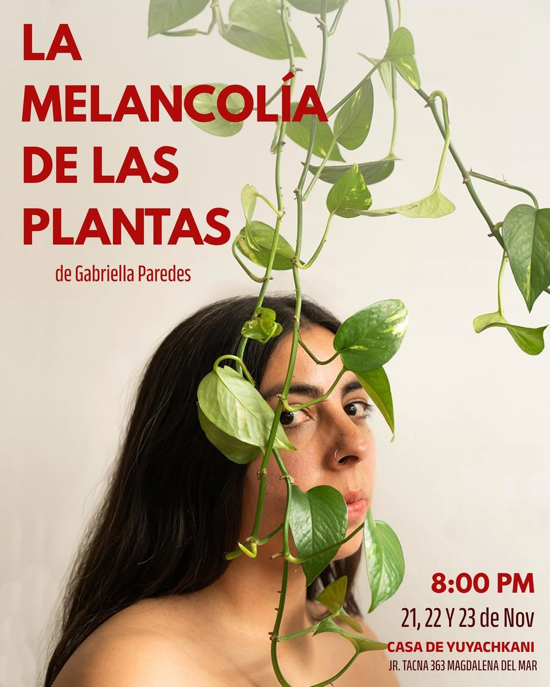 "La melancolía de las plantas" de Gabriella Paredes propone una poética del cuidado como resistencia: cuidar las plantas, cuidar la memoria, cuidar el deseo. El espacio escénico funciona como un laboratorio de supervivencia emocional y política, donde el cuerpo y las plantas dialogan en medio de la fragilidad contemporánea. La vulnebrabilidad se vuelve fortaleza en una dramaturgia que explora la autopreservación como acto revolucionario, el cuidado del jardín personal como primer paso a la formación de comunidad desde el amor.